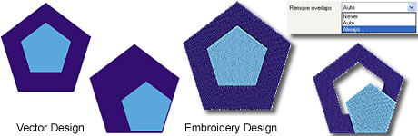An automatic filter is added that removes the overlapped objects, where needed, and increases the embroidery quality. Also this filter can be handled manually and allows you to use your embroidering expertise.