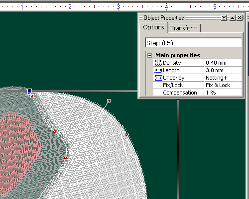 Step 5: From the Object properties menu, adjust stitch compensation, density, stitch length. |