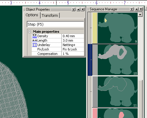 | Step 6: In the Sequence manager, simply click to select the object, drag and drop to a new location to change the sewing sequence. |